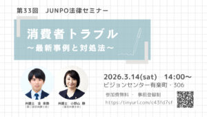 第33回・JUNPO法律セミナー「消費者トラブル~最新事例と対処法~」開催のお知らせ